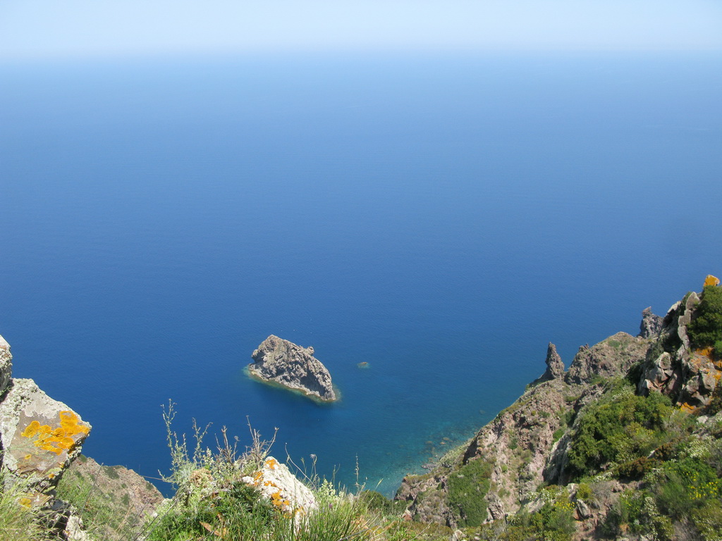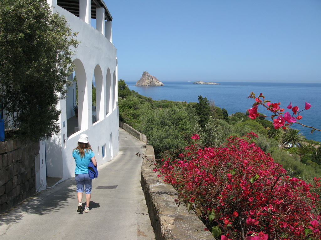Na tomto ostrove s prekrásnou prírodou je najkvalitnejšia a najlepšie značená sieť turistických chodníčkov zo všetkých Liparských ostrovov. Tento ostrov však sprevádza aj iný chýr: vraj je to zóna pre boháčov, VIP a je tu veľmi draho. Ráno vystupujeme z lode v prístave jediného osídlenia na ostrove San Pietro. V prístave si dávame na raňajky kávu s brioškami - za rovnakú cenu ako všade inde. Nechávame si v kaviarni nabalené batohy a naľahko vyrážame na okruh ostrovom.