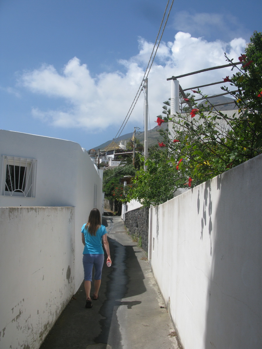 Po dvoch nociach v stane na Vulcane sme sa rozhodli, že skúsime nájsť lacné ubytovanie. Plán bol ostať tu len dve noci. Začiatkom mája sa ešte sezóna len ospalo prebúdza zo zimného spánku. Hneď na prístavnom móle sme odolali ponukám niekoľkých domácich ponúkajúcich nám svoje služby, aby sme po krátkom rozhovore s predavačom ovocia v neďalekom stánku aj tak skončili u jedného z nich.