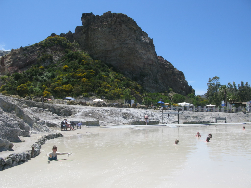 Hneď neďaleko prístavu Porto Levante na Vulcane je totiž sopečný pahorok na úpätí ktorého vyviera v malom jazierku sopečné bahno. V okolí je množstvo fumarol, tie vyvierajú aj v mori a v zálive ohrievajú vodu. Sopečné bahno je teplé a má liečivé účinky. Pomáha pri všetkých kožných chorobách a známe sú aj pozitívne účinky pri chorobách pohybového a dýchacieho ústrojenstva. Za vstup do areálu jazierka s bahnom sa v čase našej návštevy v polovici mája platilo 2 eurá/os. My sme sa dohodli, keďže sme chceli prísť viac krát na trojdňovej permanentke.