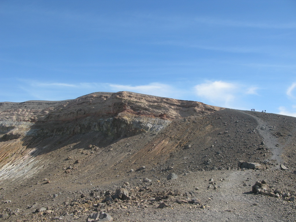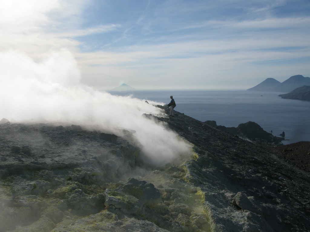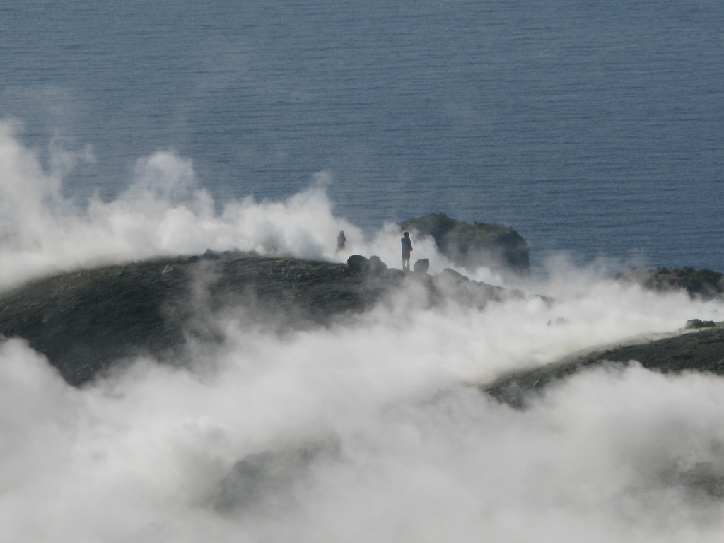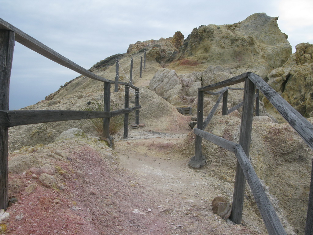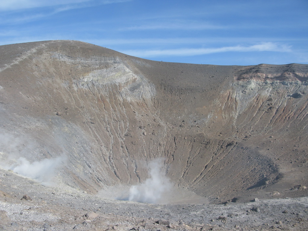 Na okraji krátera je možné pozorovať veľké fumaroly syčiace z puklín. Je tu množstvo vyzrážanej síry vo všetkých odtieňoch žltej a bielej farby. Pripravte sa na tomu zodpovedajúci smrad. Tabuľa na začiatku chodníčka dokonca varuje pred výparmi, ktoré môžu byť jedovaté...
