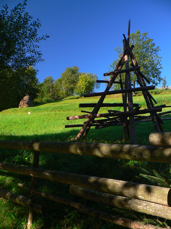 Nakoniec som sa uhniezdil v jednej šopke, spacák akurát krížom vošiel. Len myšacie diery bolo treba poupchávať. Ešte pred zotmením dosť času ostalo na prieskum okolia – v lese pekný posed, priamo na lúke malá priepasť – Ľadová jama. A zrazu sa začali aj ľudia trúsiť – tu dvaja, tu traja, nakoniec nás tam po okolí spalo zo desať a k tomu dva psy. Zaspávam spokojne po upresnení zajtrajšieho programu - Stožky, Randavica, tisovské lazy a dolina Rimavy. Len to jelenisko mohlo v noci odísť ručať trochu ďalej :-)