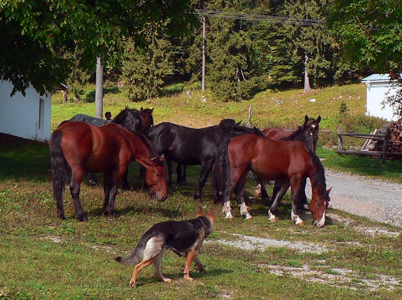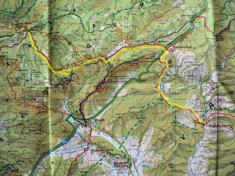 Teším sa na hlboké lesy Muránskej planiny. Nad dedinou odbočujem doľava na ďalšiu červenú, ale nezačína to bohvieako – od ťahaných kmeňov rozoraná zvážnica, predo mnou silnie zvuk motorovej píly. Muránska planina je známa výdatnými vyvieračkami s dobrou vodou – okolo jedného záchytu prameňa prechádzam a samozrejme tankujem doplna. O chvíľu som na ceste pred Veľkou lúkou – síce asfalt, ale dolinka je tu pekná. No - až na tie kopy dreva, rozrytú trávu a hučiaci traktor vo svahu. Veľká lúka ale dojmy napráva – počasie ako na výrobu pohľadníc, koníky pobehujú, ošetrovateľ je ochotný povysvetľovať. Vraj keby nebolo europeňazí na podporu málopočetných plemien, ktovie či by sa chov udržal. Lesníckeho koňa sa oplatí zvonka doviezť. Aký má pôvod a výcvik, to už nevedno – ale je lacnejší.