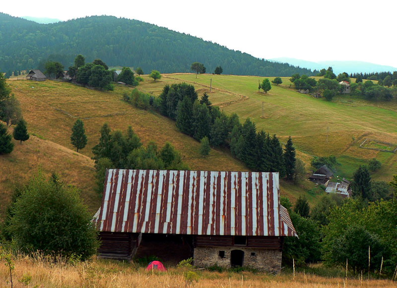 Ráno na opustených lazoch nad osadou Kysuca je síce polojasné, ale oblakov akosi rýchlo pribúda. Tretí deň zvykne byť vraj kritický, tak to dnes nejdeme preháňať a zo stanu lezieme až po ôsmej. Smer Klenovský Vepor, možno až sedlo Zbojská, 6 hodín pochodu (minimálne).