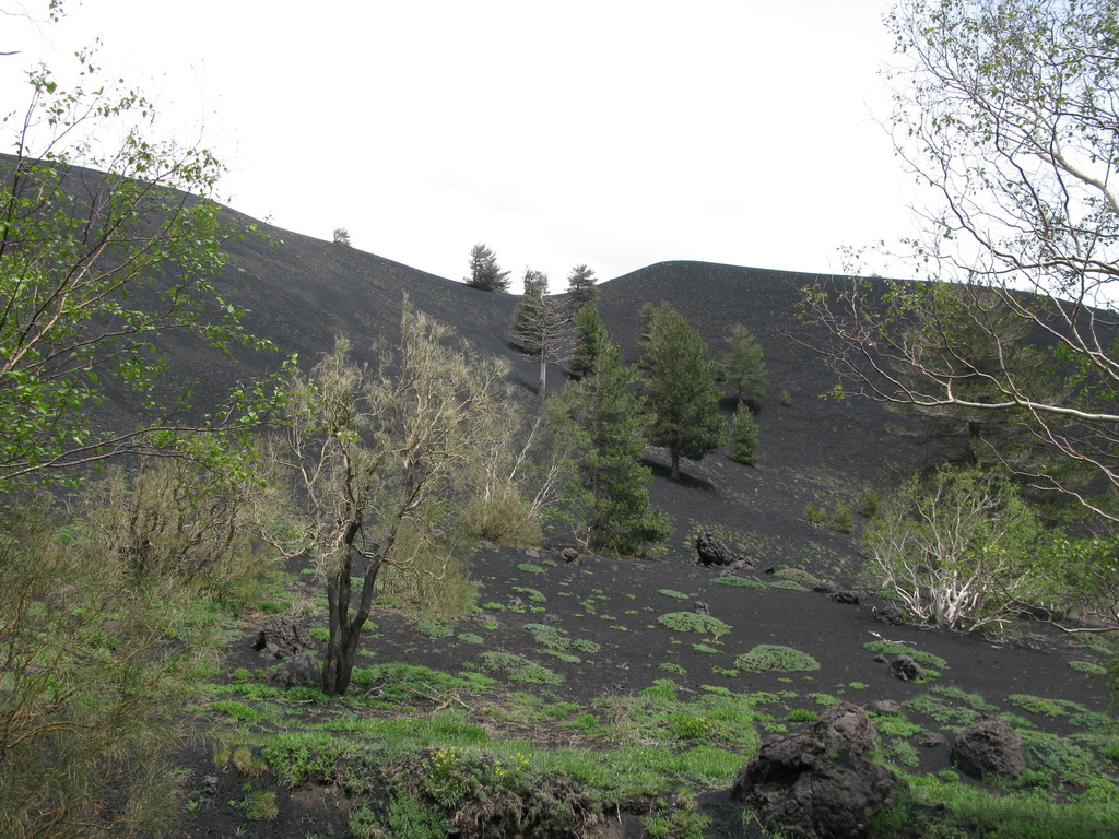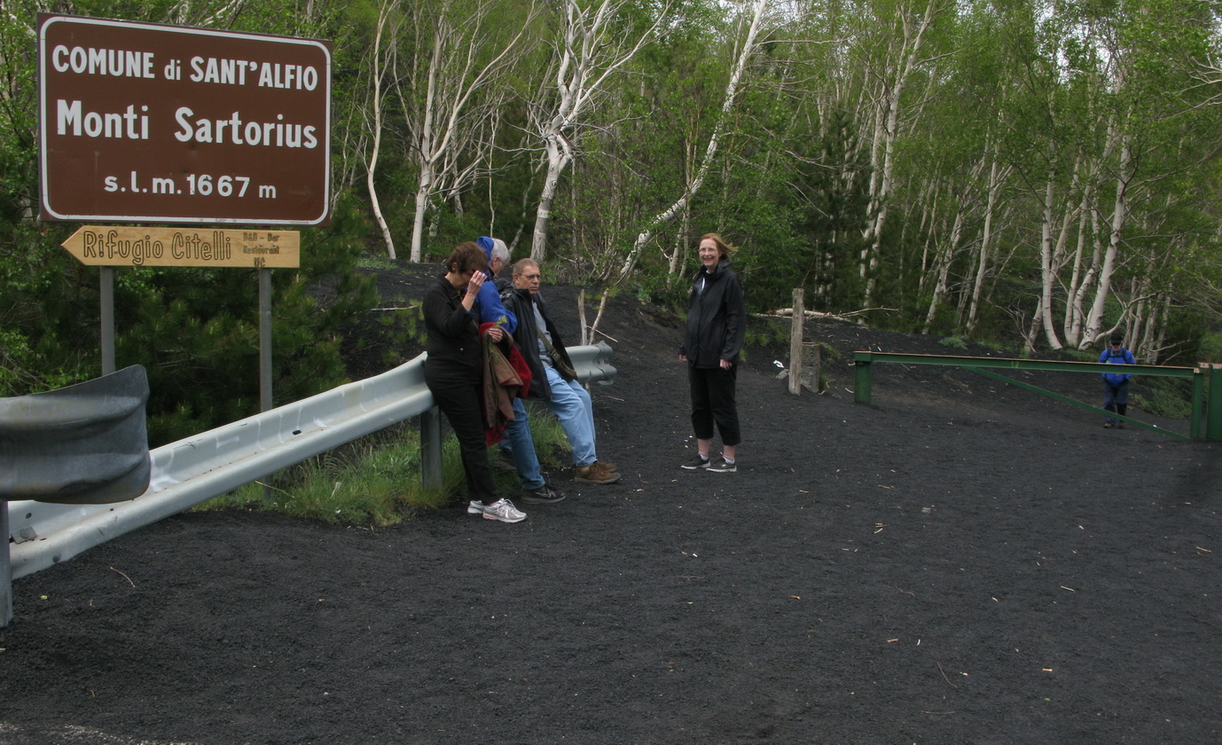 Pokračujeme asfaltkou smerom ku chate Citelli. Kúsok pred ňou parkujeme pri ceste. Je tu viacero áut a náš knižný sprievodca nás smeruje na krátku túru okolo kráterov Monti Sartorius. Prvý raz sa prechádzame pomedzi typickú a pre nás zvláštnu vegetáciu podhoria Etny. Ako podklad je sopečná škvára, žiadny hustý porast, ísť sa dá všade. Rovnako sa dá aj rýchlo stratiť správny smer :)