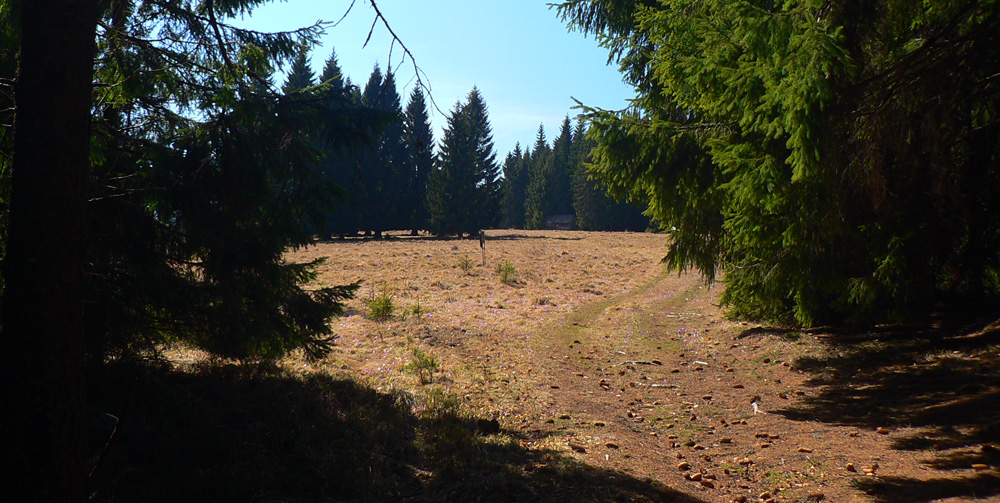 Ono tých miestopisných rarít sme mali cestou viac. Lebo začali sme v Chvatimechu, čo je sám osebe origo názov, ale hlavne konečná čiernohronskej železničky. Na rozdýchanie strmá zjazdovka k chate Bernardín. Už zarastá, lebo tunajšia legendárna, vyše 60-ročná „pralanovka“ už 20 rokov ľudí voziť nesmie. Zato je ale vďaka dobrovoľníkom vyleštená ako nová, tak možno sa ako historická rarita onedlho pridá k úzkokoľajke. Sú tu inak perfektné spätné pohľady na nízkotatranský hrebeň. A akurát kvitli šafrany, pekný deň pred nami.